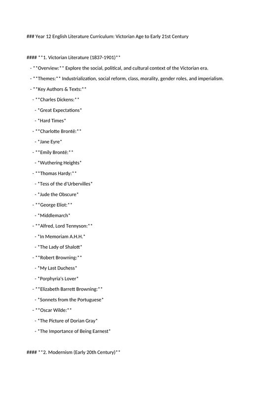 Year 12 English Literature Curriculum