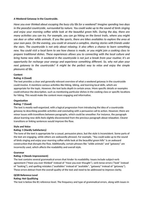Text Evaluator A Weekend Getaway In The Countryside