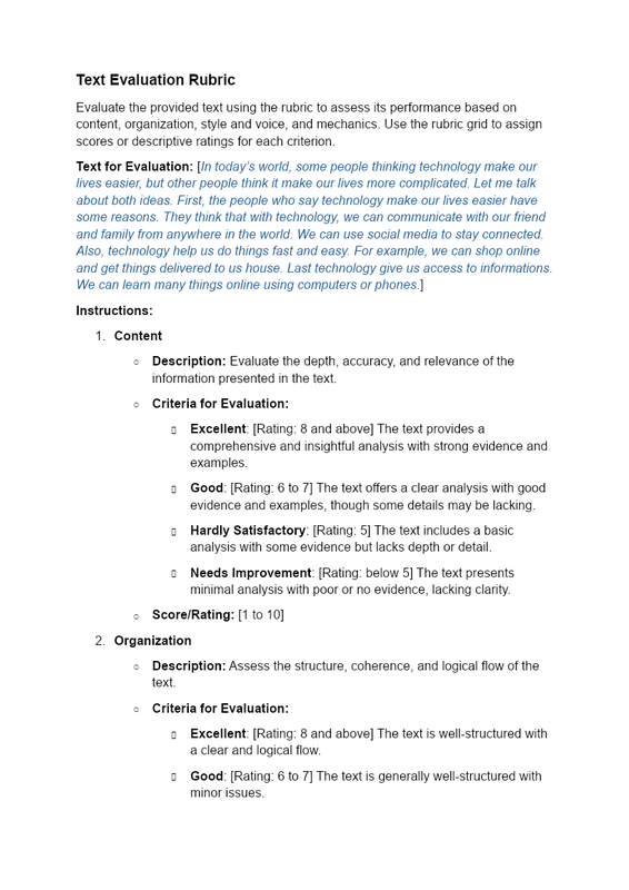 Text Evaluation Rubric